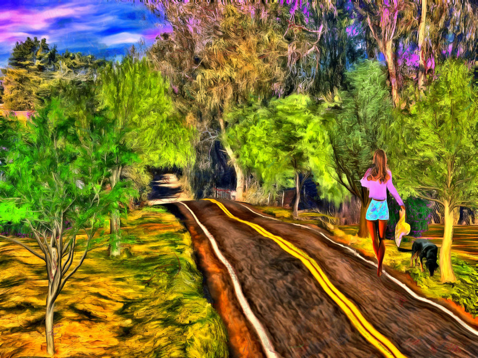 These paintings represent scenes that I like. they include rivers, trees, flowers, dogs, horses, crazy pix, countryside views. I don't create art that I don't personally like. When I look at a painting, I want it to make me feel relaxed and have a sense of well being; something that is at a premium in the world today. If the places and objects portrayed here aren't real, they should be.