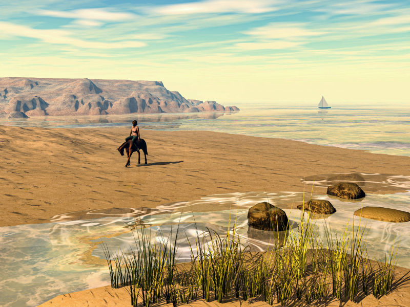 Seascapes give me a great feeling of relaxation and having fun on a wonderful vacation. Just looking at them lets your imagination soar to far away beaches and seas. These are original art work. Paintings were created in 3D space using 3D modeling applications, with post production work done in various photo editing applications, and are hand painted using a stylus and graphics tablet. The painting is high quality and printed with archival ink on quality art paper. The painting is sent in a mailing tube and can be matted and framed appropriately. They range in size from 10X8 inches to 18X12 inches and $19 -$50.